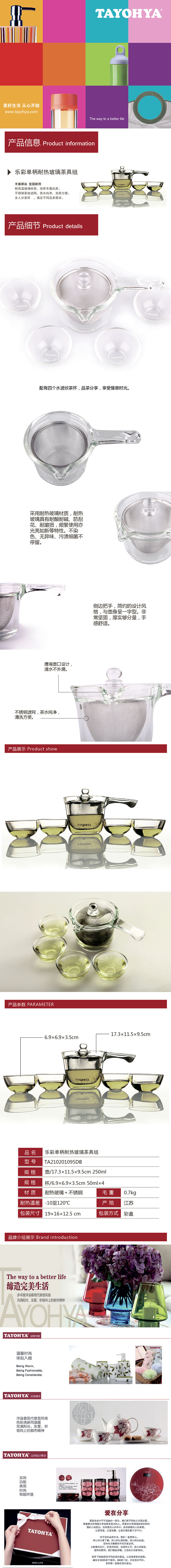 多样屋 乐彩单柄耐热玻璃茶具组TA2