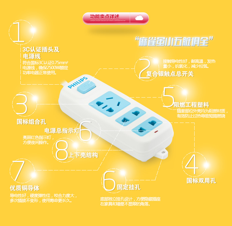 首页 > 积分商城 > 飞利浦控插线板 拖线板插座排插接线板SPN2232WA/93